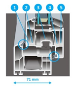 Az 5 légkamrás Optimum műanyag ablak kiváló választás, ha nem szeretne a minőségben kompromisszumokat kötni, ugyanakkor a kedvező árfekvés is lényeges szempont az Ön számára. Fő terméktulajdonságok: Beépítési mélység (profilvastagság): 71 mm Üvegezés: 24-36 mm, két vagy háromrétegű kivitelben Hangszigetelés: 38dB-ig fokozható (3 rétegű, 36 mm vastag üvegezés esetén) Hőszigetelés: Üvegezés: Ug = 0,7 W/m2K (3 rétegű, 36mm vastag üvegezés esetén) A teljes műanyag ablakrendszer hőátbocsátási képessége: Uw = 0,96 W/m2K (kétrétegű, 24 mm-es alapkivitelben: 1,2 W/m2K)